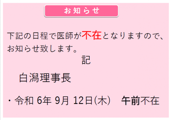 白潟理事長不在のお知らせ