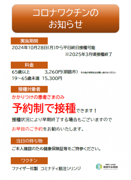 > コロナワクチンのお知らせ(更新)