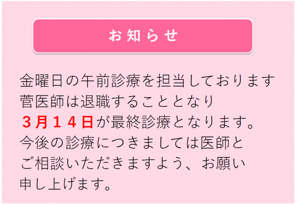 菅医師 退職のお知らせ