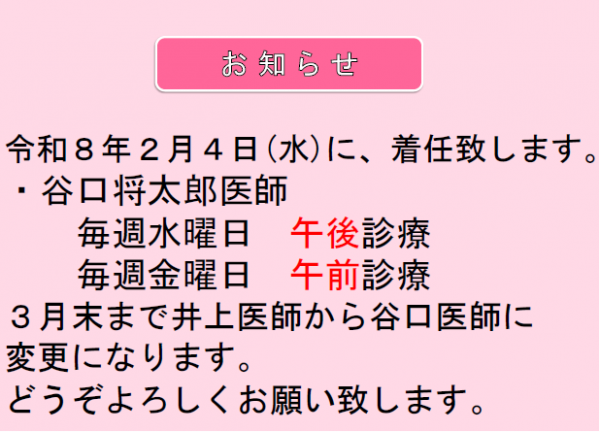 谷口将太郎医師着任のお知らせ